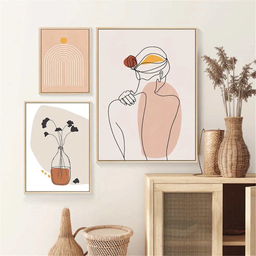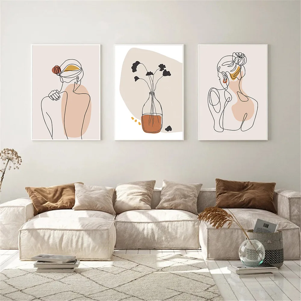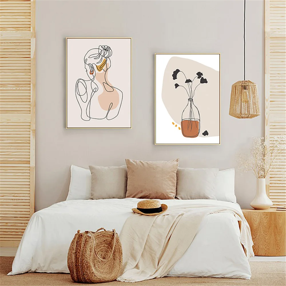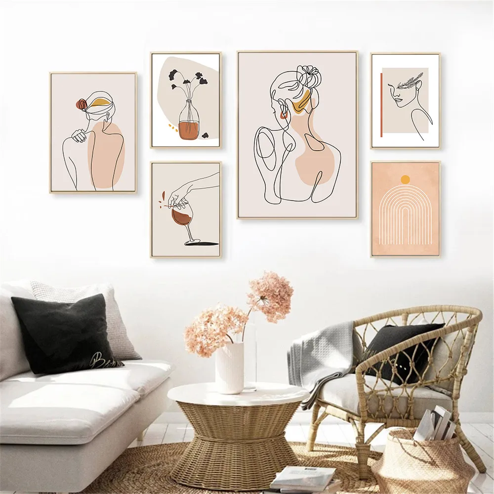 Плакаты для рисования линий, Абстрактная Картина на холсте с изображением девушки на спине и теле, настенные художественные плакаты с винными мотивами, Минималистичная картина в стиле бохо, домашний декор