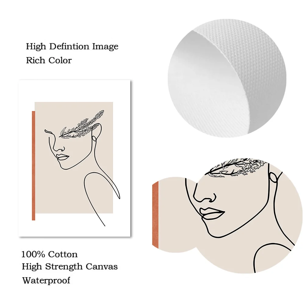 Черно-белый цветок на холсте Рисование лица женщины линий постер с ...