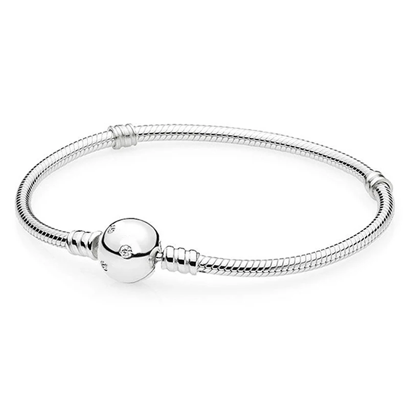Оригинальные бусины и ПАВЕ, хрустальный шар и цилиндрическая застежка, Змеиный браслет-цепочка, подходит для модного браслета, серебро 925 пробы, очаровательные украшения сделай сам