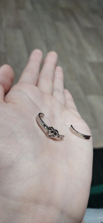 кольцо пришло вот таким вот поломанным,не советую заказывать именно это кольцо,оно очень лёгкое и не пойми из чего сделано, + может быть вот так как на фото.Немного обидно конечно (
