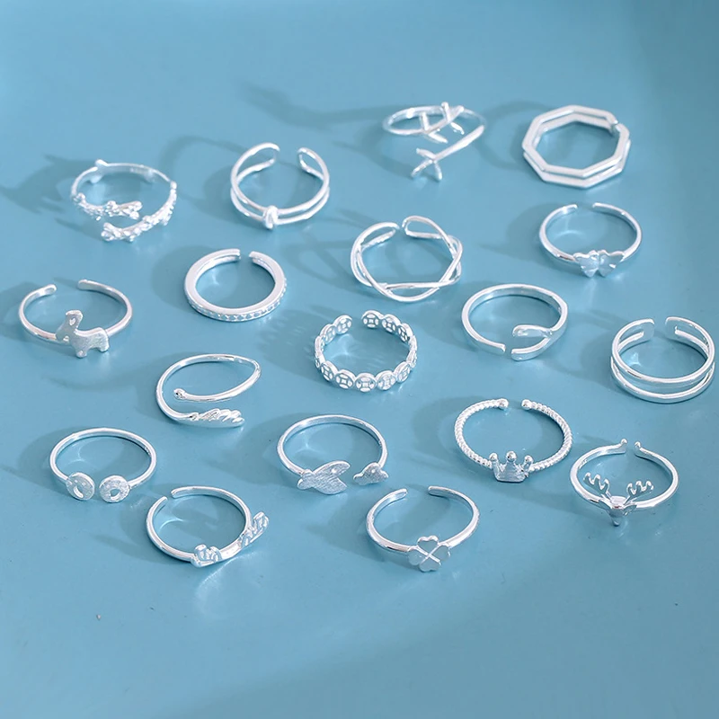 2021 Новый Винтажный античный серебряный Цвет несколько Стиль Открытые Кольца для женщин в стиле панк, в стиле хип-хоп регулировочного кольца модные ювелирные украшения, лучший подарок
