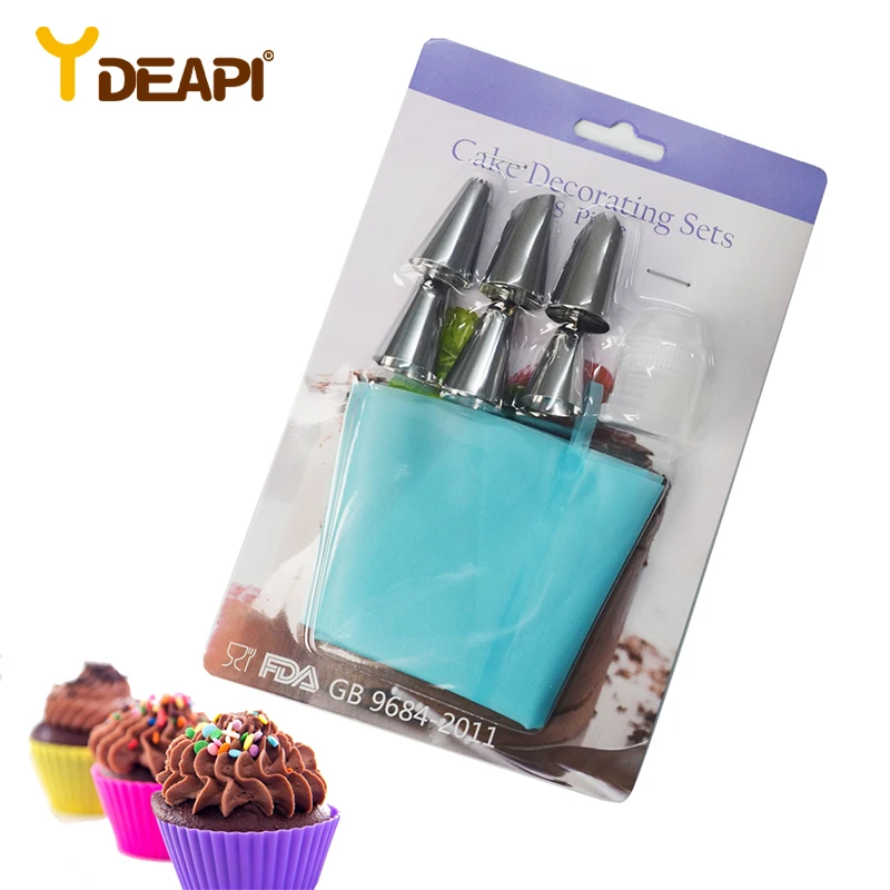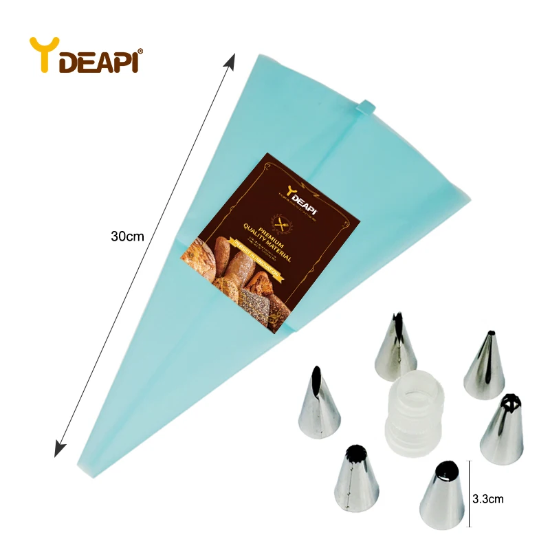 YDEAPI силиконовый Кухня аксессуары Обледенение Трубопроводы Крем кондитерский мешок 6 Нержавеющаясталь комплект насадок насадки для украшения тортов сделай сам; Комплект
