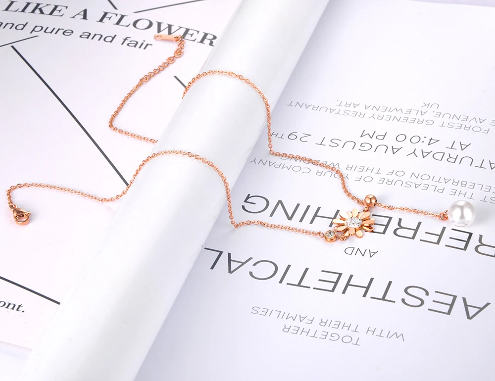 Lokaer нержавеющая сталь глиняный Стразы Дейзи цветок очарование кулон ожерелье Мода белый жемчуг, колье для женщин в стиле N21103