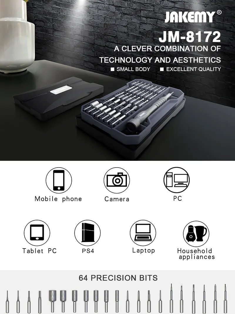 Jakemy JM-8172 многофункциональная отвертка Набор инструментов для ремонта с S2 магнитными драйверами для дома DIY улучшение для ремонта телефона