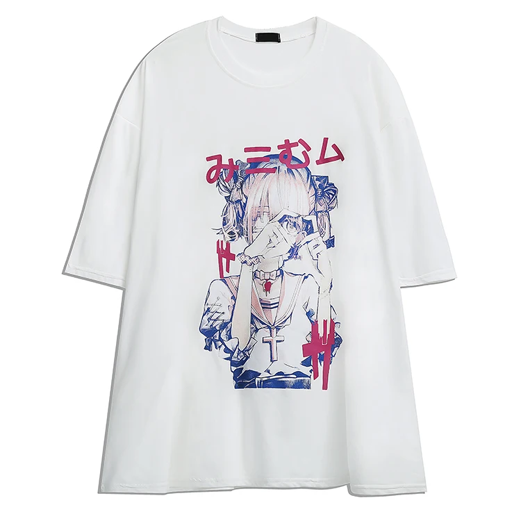 Готическая женская футболка HOUZHOU 2021, винтажный Топ большого размера в стиле Харадзюку, женская летняя одежда, футболка в стиле аниме, футболка большого размера
