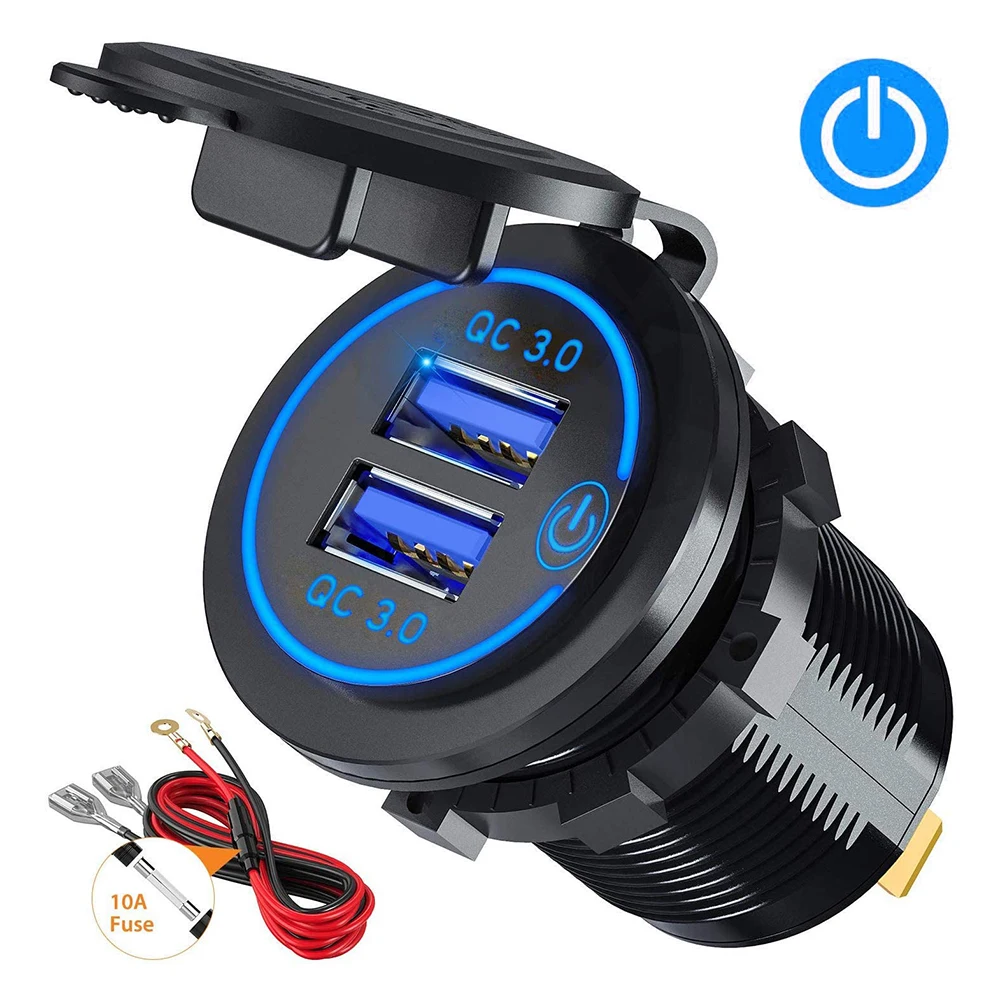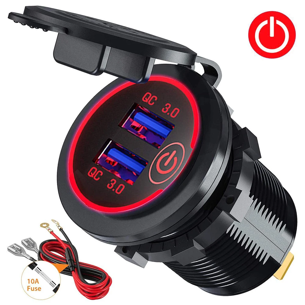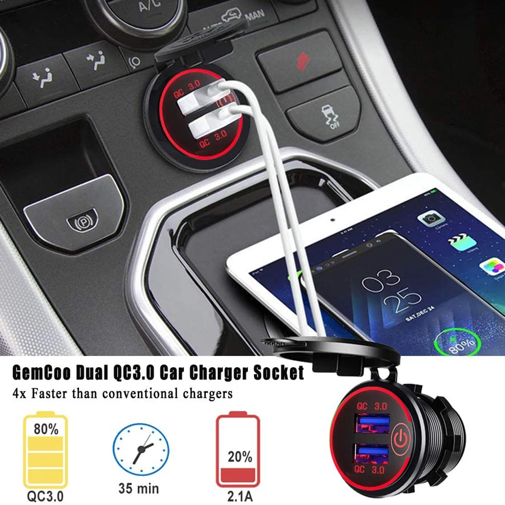 Автомобильное зарядное устройство с двумя USB-разъемами QC 3,0, быстрая зарядка 12-24 в с сенсорным переключателем для Apple Android, цифровое модифицированное автомобильное зарядное устройство