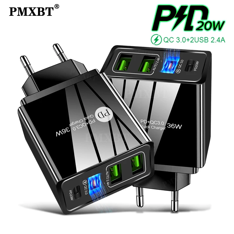 Зарядное устройство USB 36 Вт, быстрая зарядка 3,0, Тип C PD 20 Вт,...