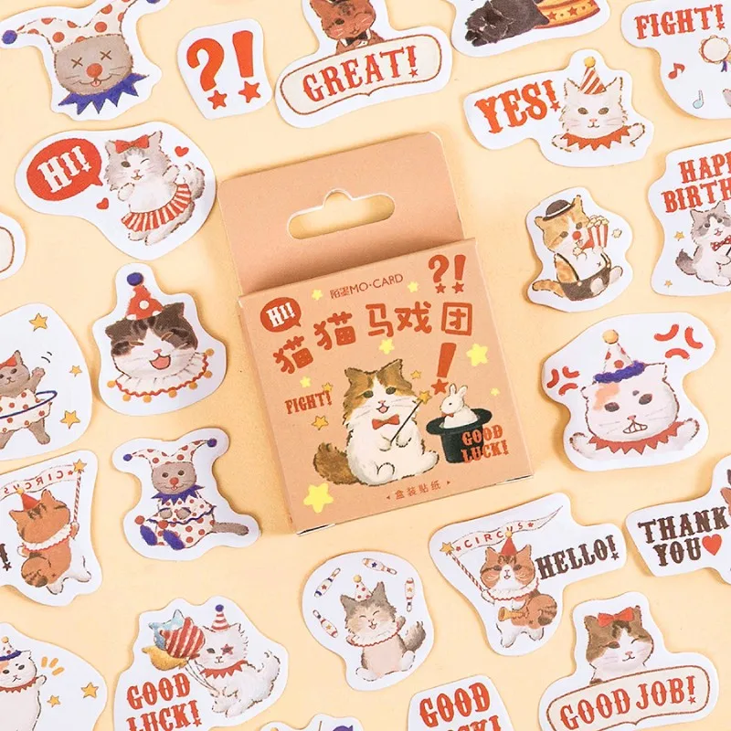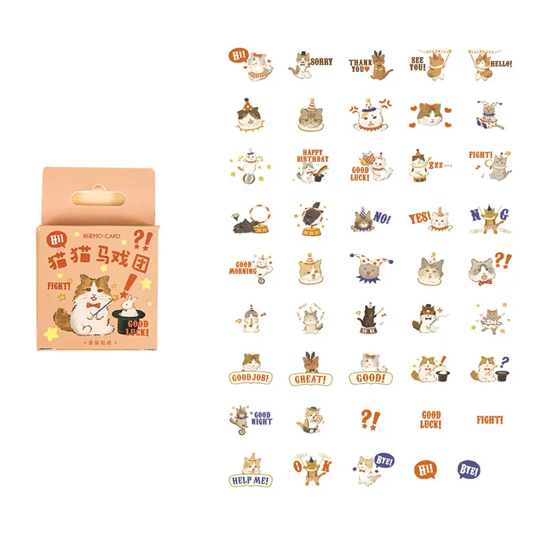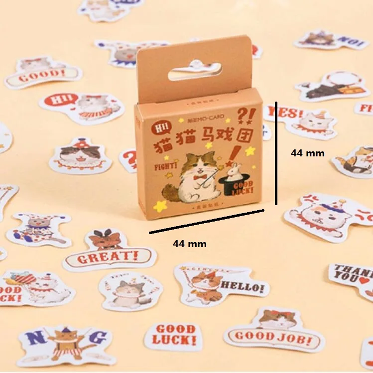 45 штук в коробке, наклейка с котом, цирком, животными, Мультяшные декоративные наклейки s, сделай сам, скрапбукинг, ручная учетная запись, разрезанная искусственная кожа 4 см