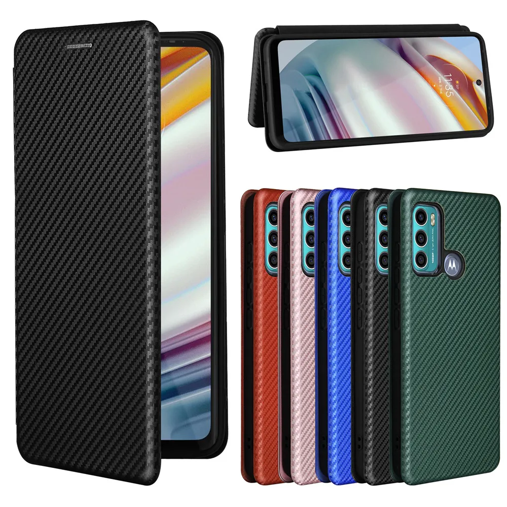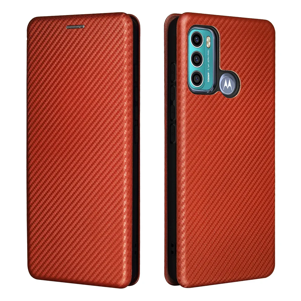 Кожаный чехол из углеродного волокна для Moto G60, магнитный чехол-...