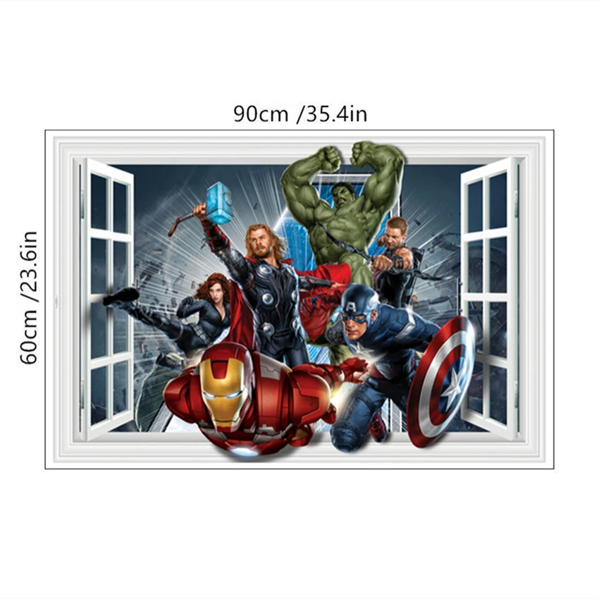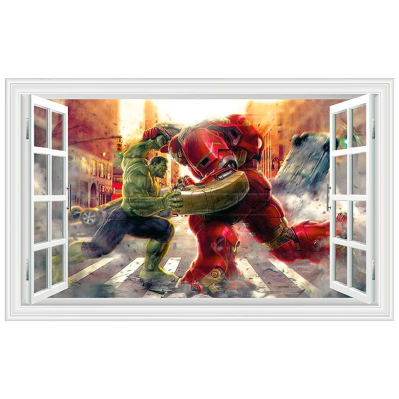 Настенные виниловые 3d-наклейки с изображением сумасшедшего Халка Тора, детских любимых героев аниме, плакатов, мультяшных бойцов, 90*60 см
