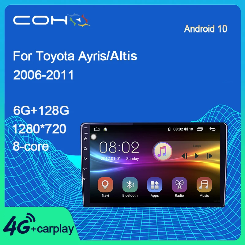 COHO Android 10 для Toyota Auris 2006-2011 Android плеер стерео аудио радио GPS навигация Основной блок 8 ядер 6 + 128g