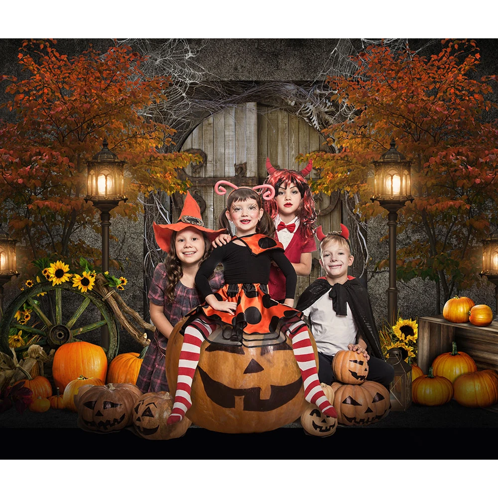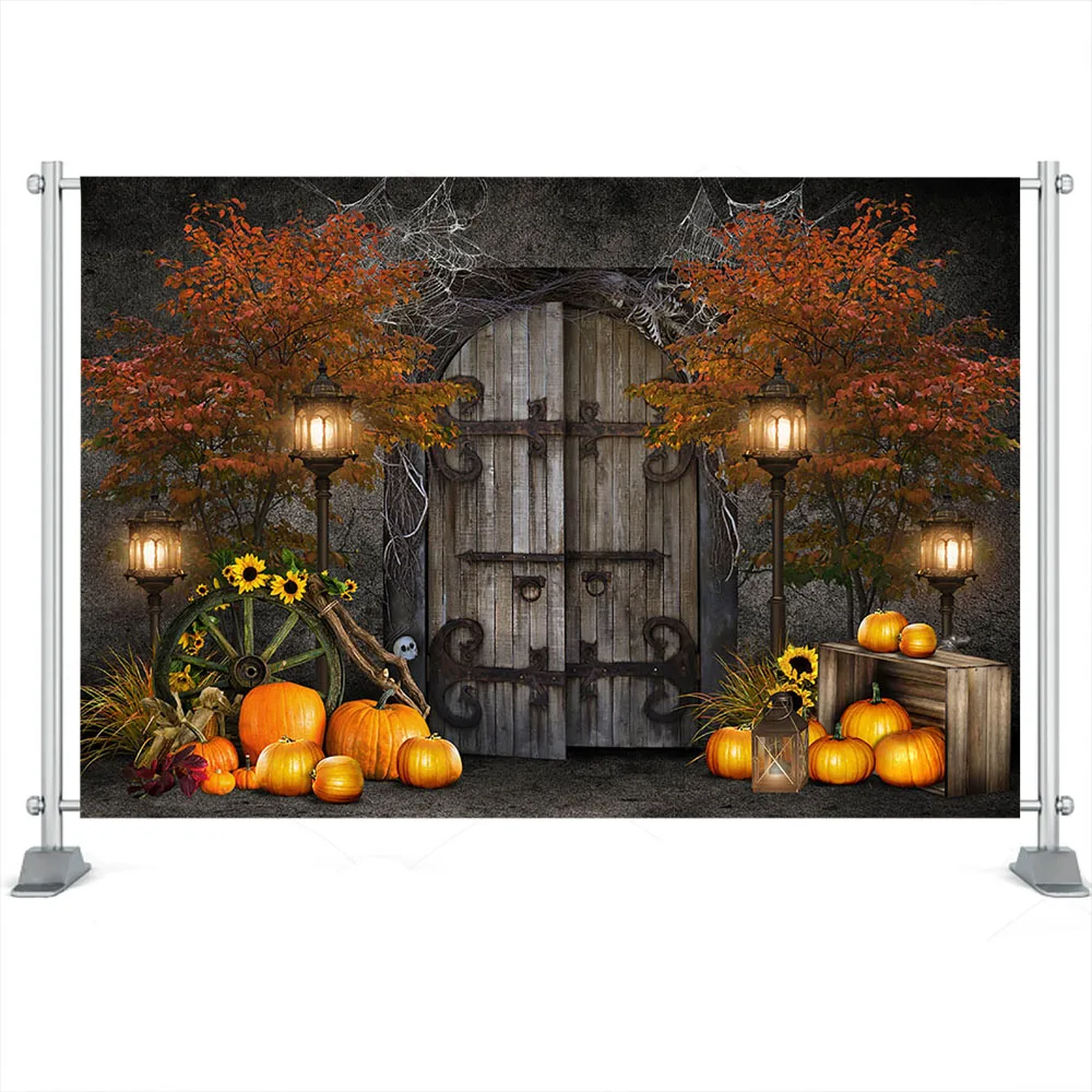 Тыква деревянная дверь Хэллоуин фон Детская фотография реквизит дом клен Декор осень ребенок день рождения портрет Фотостудия