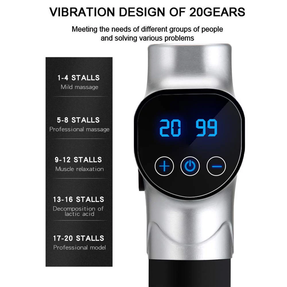 5, ЖК-дисплей HD: ЖК-дисплей HD. Сенсорные кнопки. Точный дисплей положения шестерни, мощности и переключателя. 20 скоростей вибрации регулировки. Эффективный массаж для расслабления мышц. Обновленный сенсорный ЖК-экран, нажмите кнопку, точно отображает скорость, мощность.