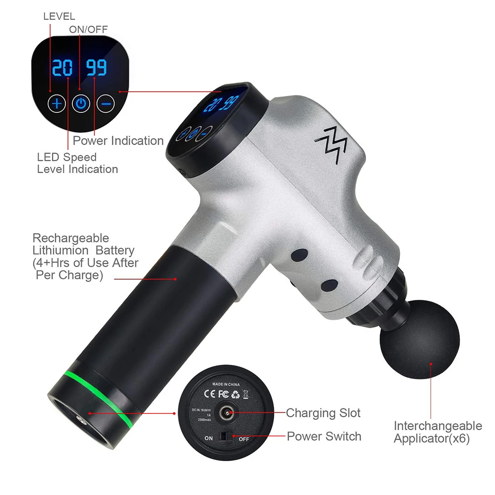 4. Быстрая зарядка: массажер оснащен высококачественной литиевой батареей емкостью 2500 мАч, которая может работать от 5 до 8 часов после каждого заряда и может быть быстро заряжена.
