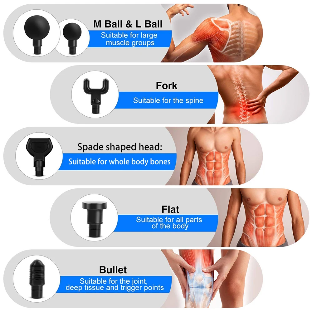 2, шесть различных массажных головок: массажер оснащен шестью различными формами массажных головок, чтобы помочь пользователям расслабить различные части тела.3. Высококачественный двигатель: массажер оснащен высококачественным двигателем и имеет функцию сверхрассеивания тепла. Высокоточная форма делает головку машины и тело плотно подключенными. Плавное скольжение может эффективно уменьшить шум во время работы. 45 дБ бесшумный массаж.