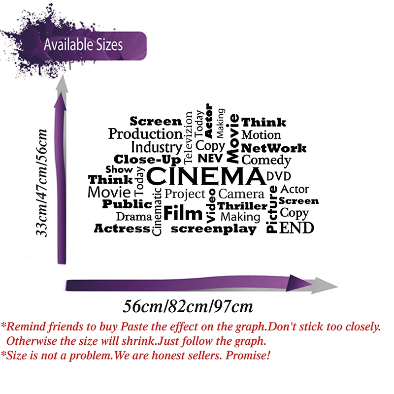 ThemeLarge Cinema Film Words Wall Sticker Office Man Cave