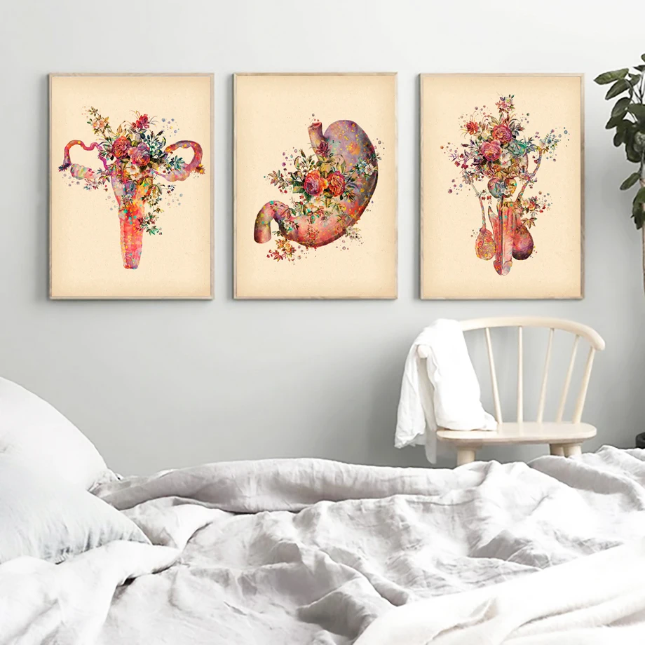 Настенная Картина на холсте в скандинавском стиле с изображением цветов, анатомии мозга, сердца, легких, почек, матки, плакаты и принты для украшения офиса врача