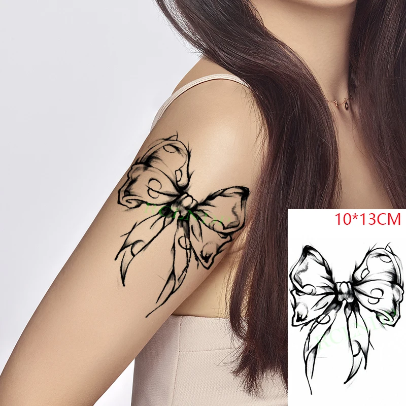Водостойкие временные тату-наклейки, леди, бант, цветок, искусственные тату, тату боди-арт для девушек, женщин, мужчин