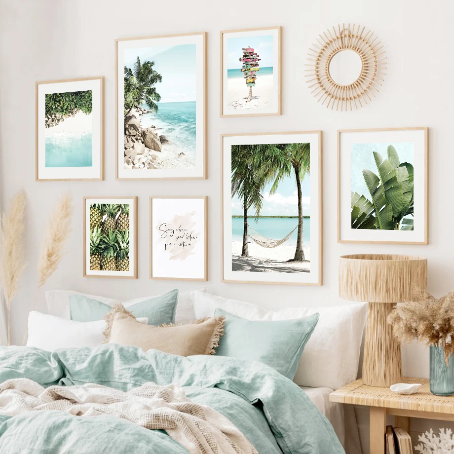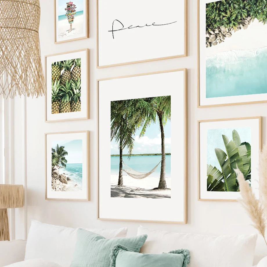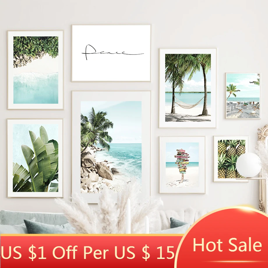 Рождественская Картина на холсте, трендовые бежевые Пальмовые Листь...