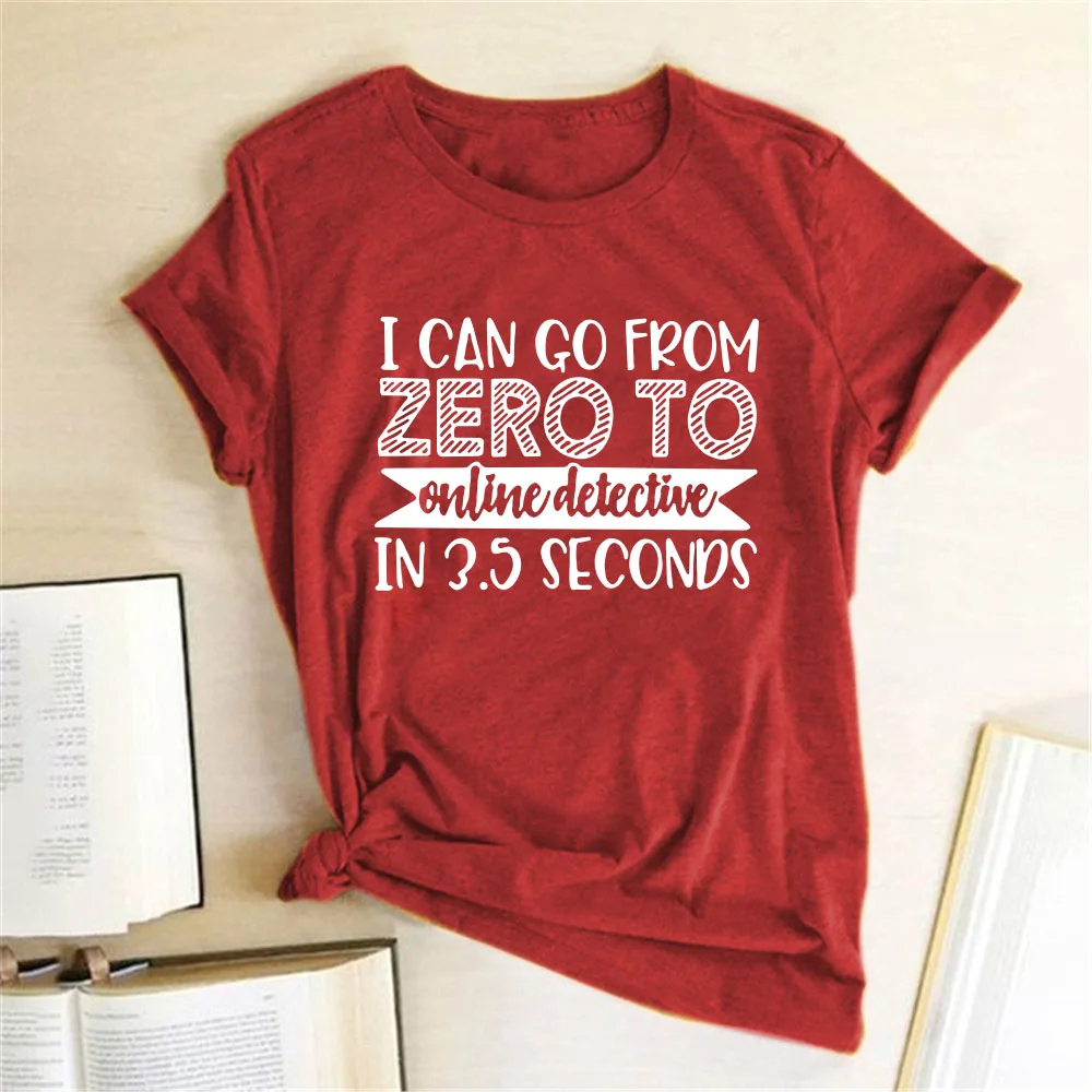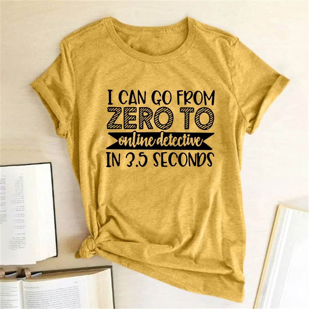 Забавная женская футболка с надписью I Can Go From Zero To Online Detective In 3,5 Seconds, летняя свободная футболка с коротким рукавом, женские топы