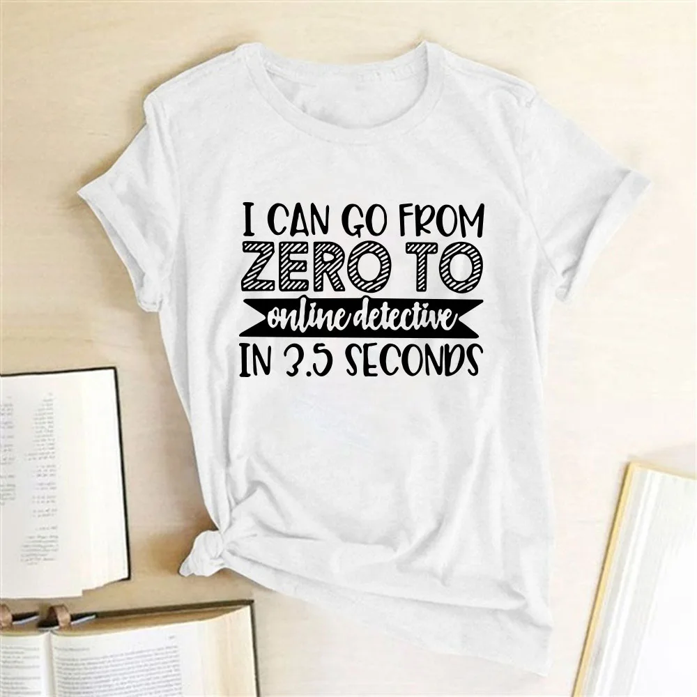 Я могу перейти от нуля до интернет-детектив в 3,5 секунд принт Забавный Для женщин футболка короткий рукав Летняя свободная футболка, женские топы