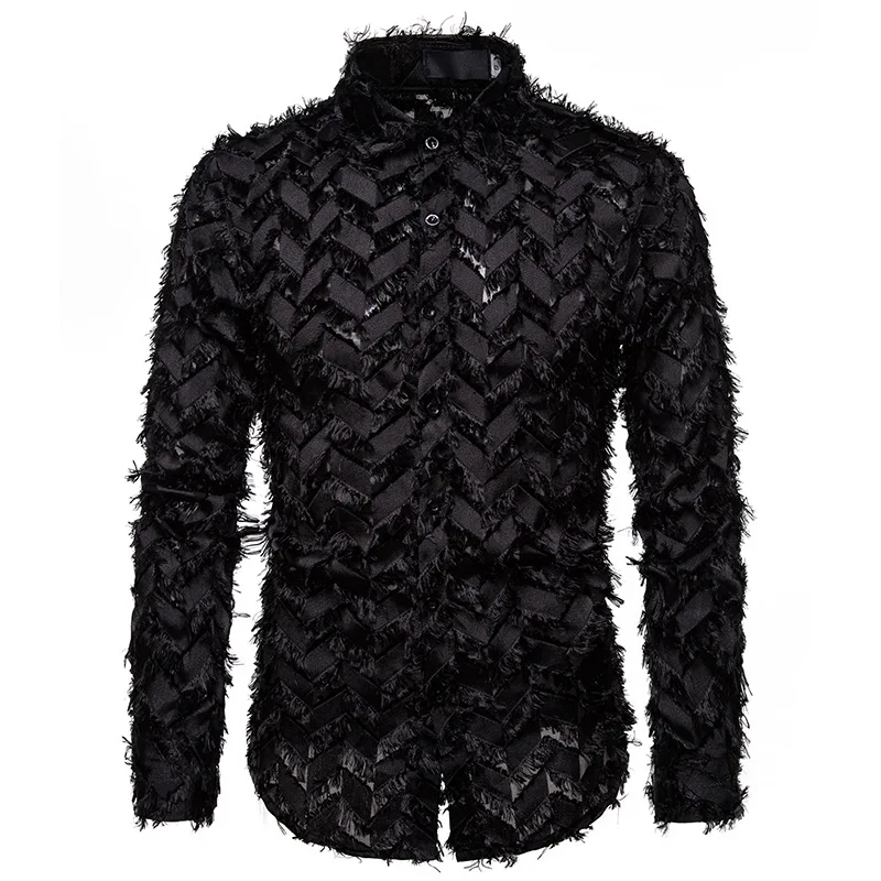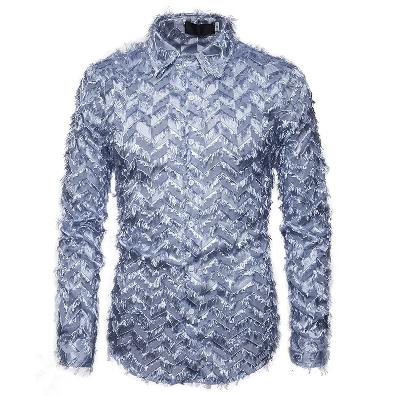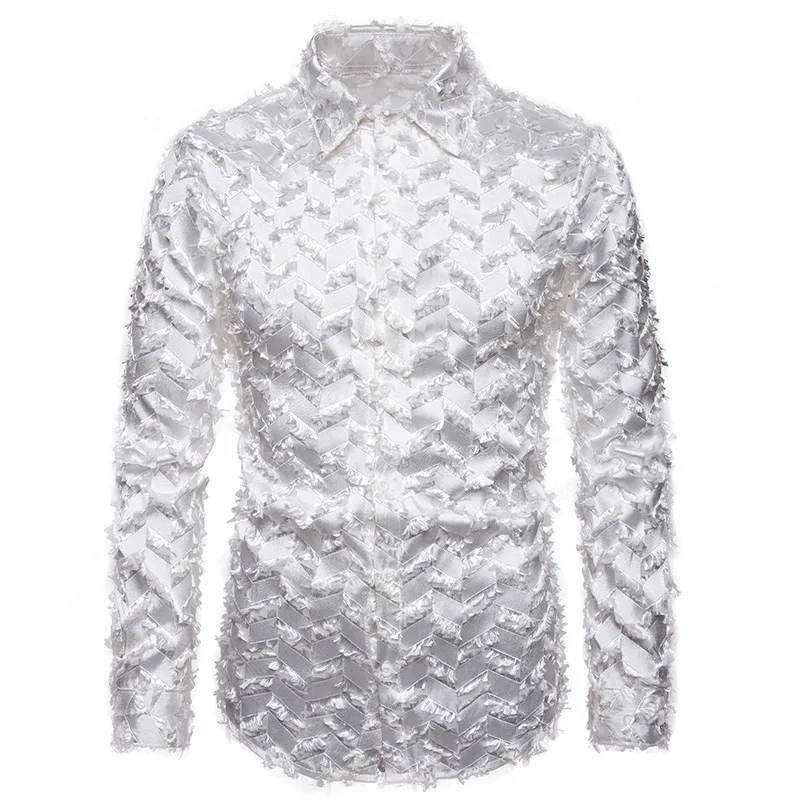 Мужская прозрачная сетчатая рубашка с перьями, однотонная кружевная...