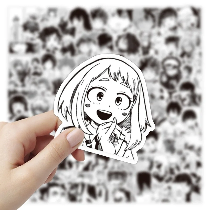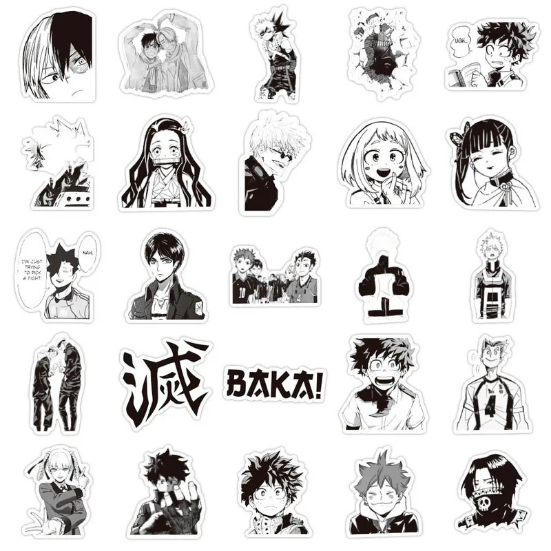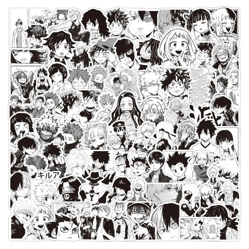 100 шт., черно-белые Мультяшные японские комиксы, смешанные пакеты, наклейки на блокнот с демонами, рассекающими атаку на титанов, моя геройская академия