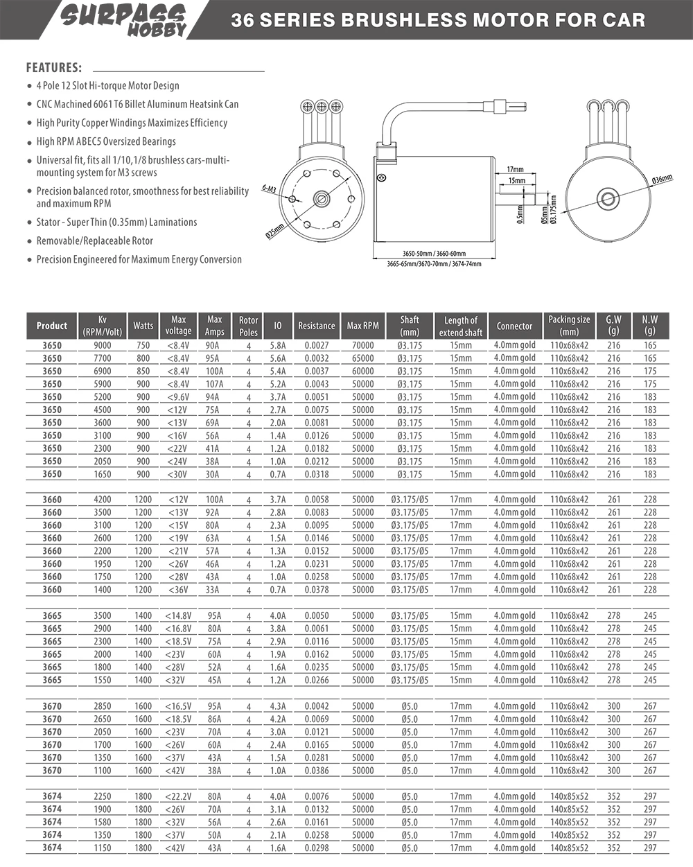 1 x бесщеточный мотор SURPASSHOBBY KK 3670