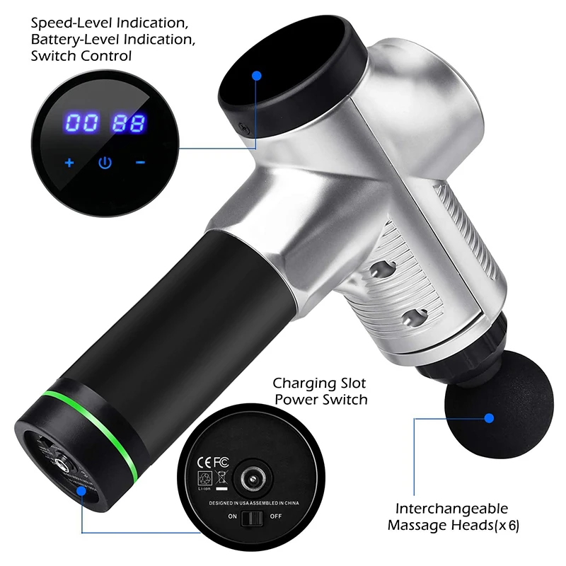 Сокращение времени восстановленияУвеличенный поток кровиОчищает молочную кислотуВыпускает мышечные узлыРазрывает рубцовую тканьУвеличенный диапазон движенияБесщеточная технология двигателя обеспечивает более стабильную и комфортную работу.Настраиваемая эргономичная Массажная головка может обеспечить комфортный массаж, уменьшая повреждение костей и ключиц.Много видов массажной головки, в зависимости от места массажа, чтобы выбрать массажную головку, принесет более полный опыт массажа.Устройство позволяет пользователю непосредственно использовать области болезненности и уменьшения боли, а также сокращает время восстановления, что делает его незаменимым продуктом для любого спортсмена.Отрегулируйте частоты в соответствии с назначением, для разогревания, облегчения болезненности, травмированных мышц, боли в мышцах и активации, облегчения герметичности; Увеличение до более высоких скоростей для больших и более сильных групп мышц.