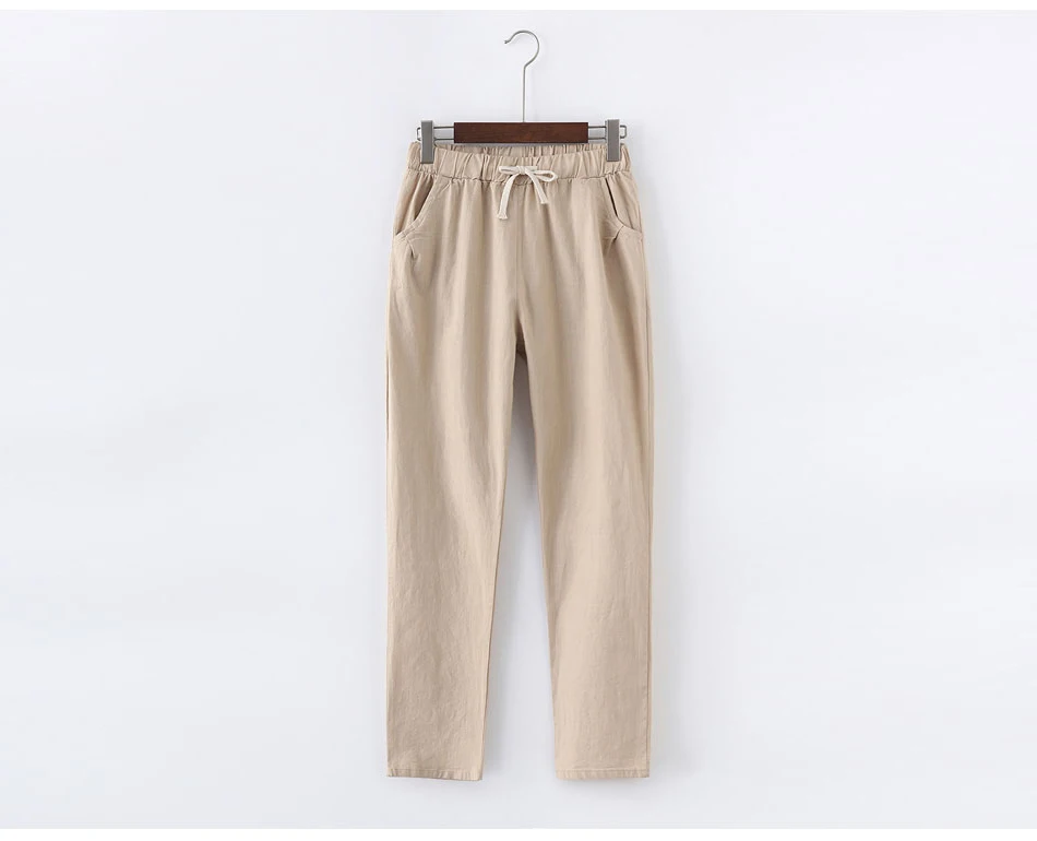 Брюки женские хлопково-льняные в стиле Харадзюку, модные Свободные ...