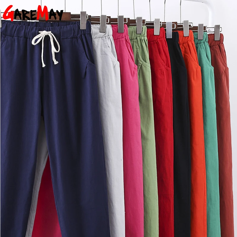 Спортивные хлопковые льняные брюки для женщин, Свободные повседневн...