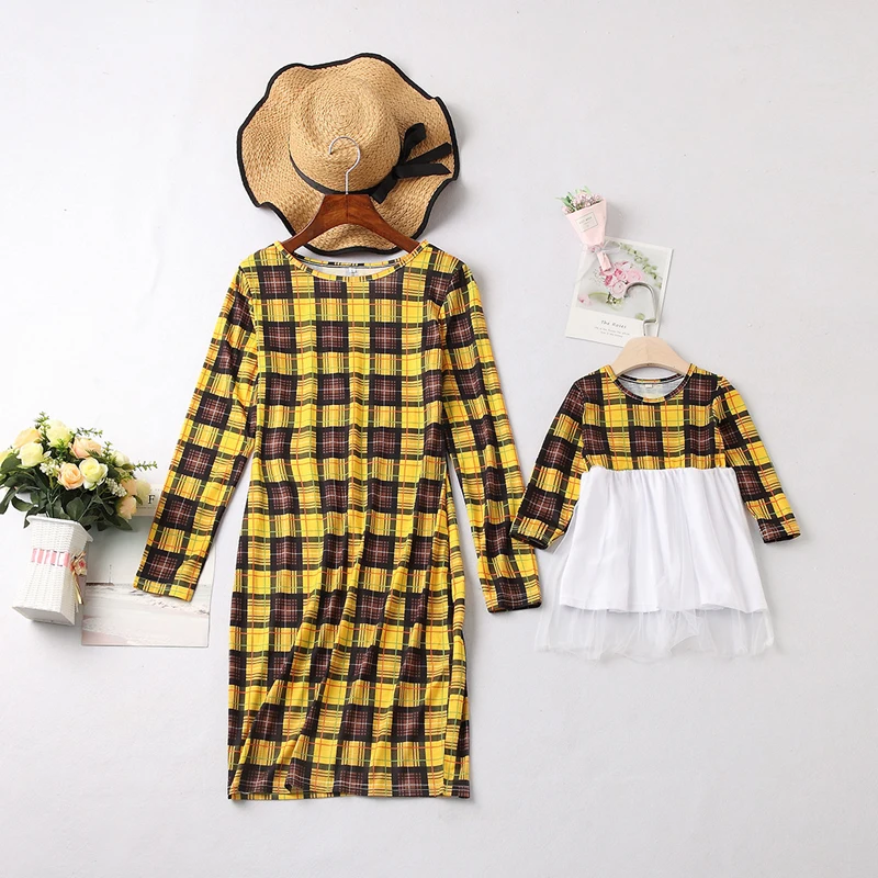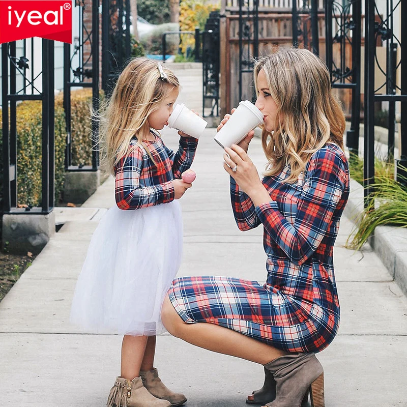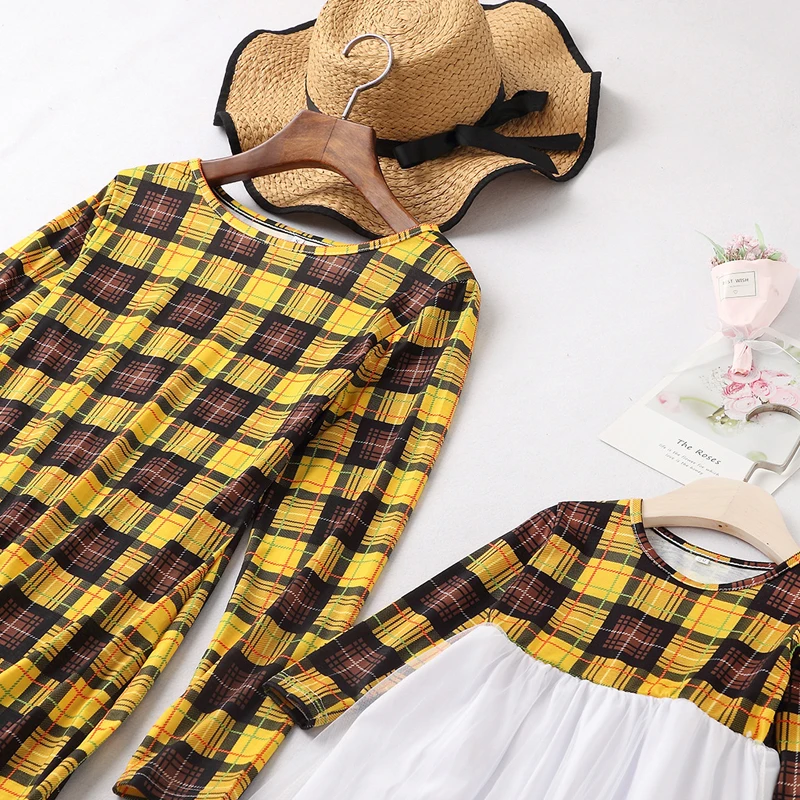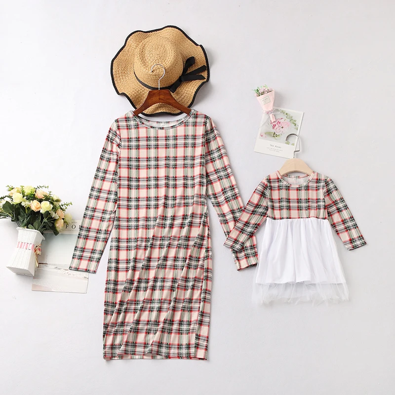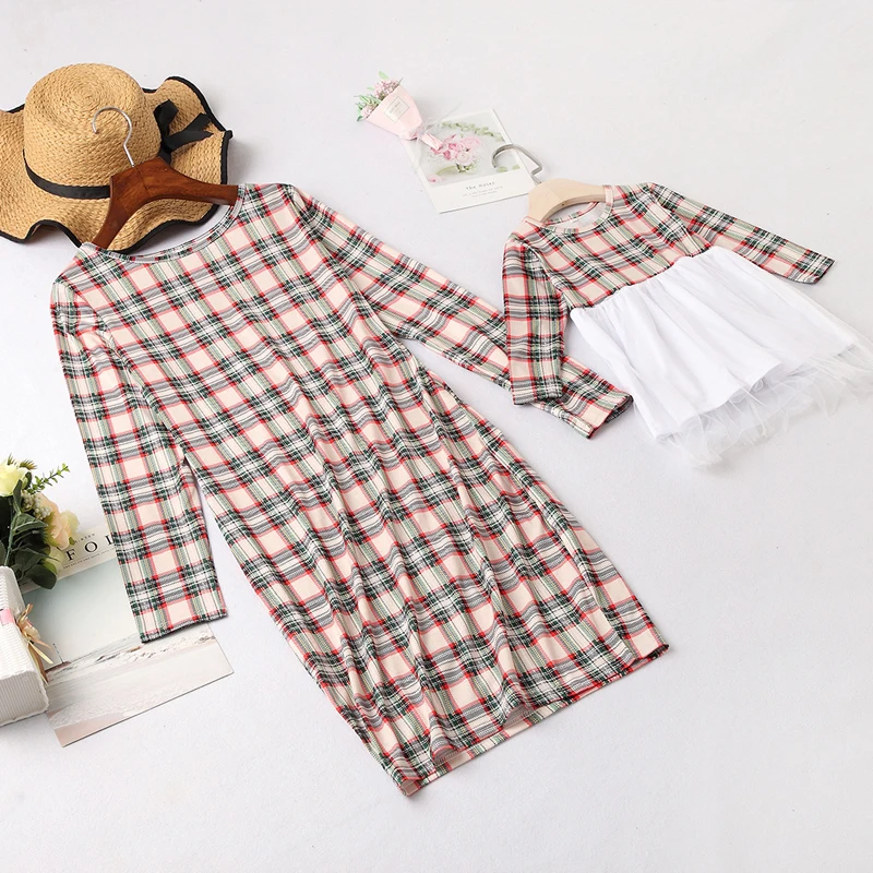 Одежда для мамы и дочери, платье для мамы и дочки, цветная клетчата...