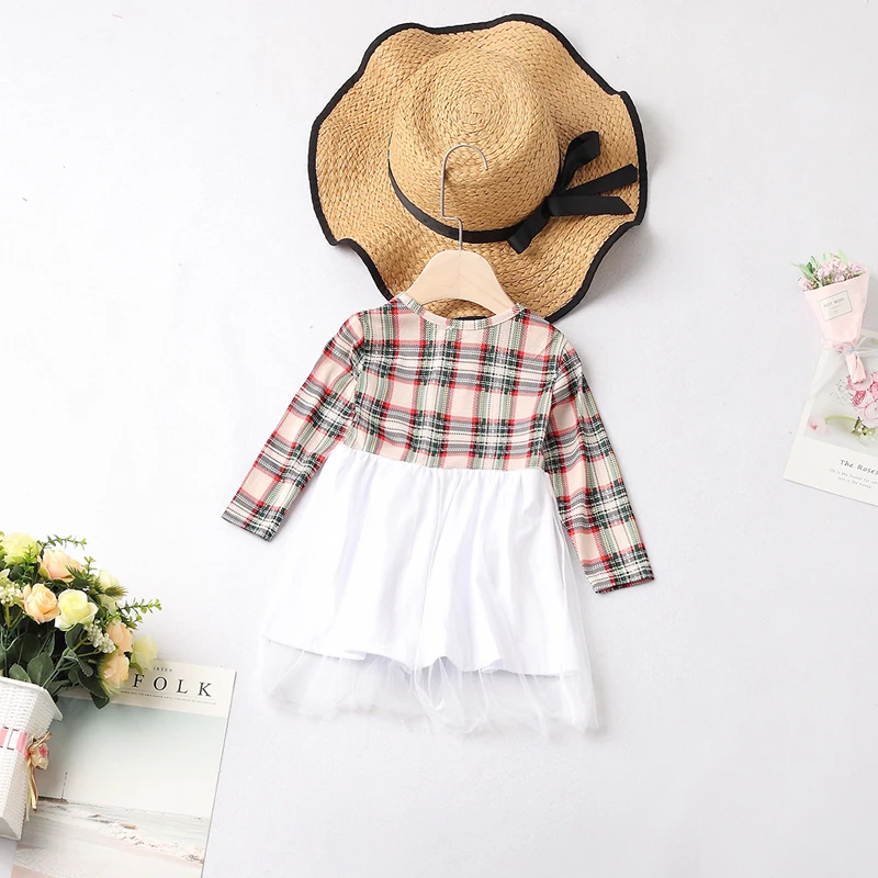 Платья с длинными рукавами для маленьких девочек, клетчатое цветное...