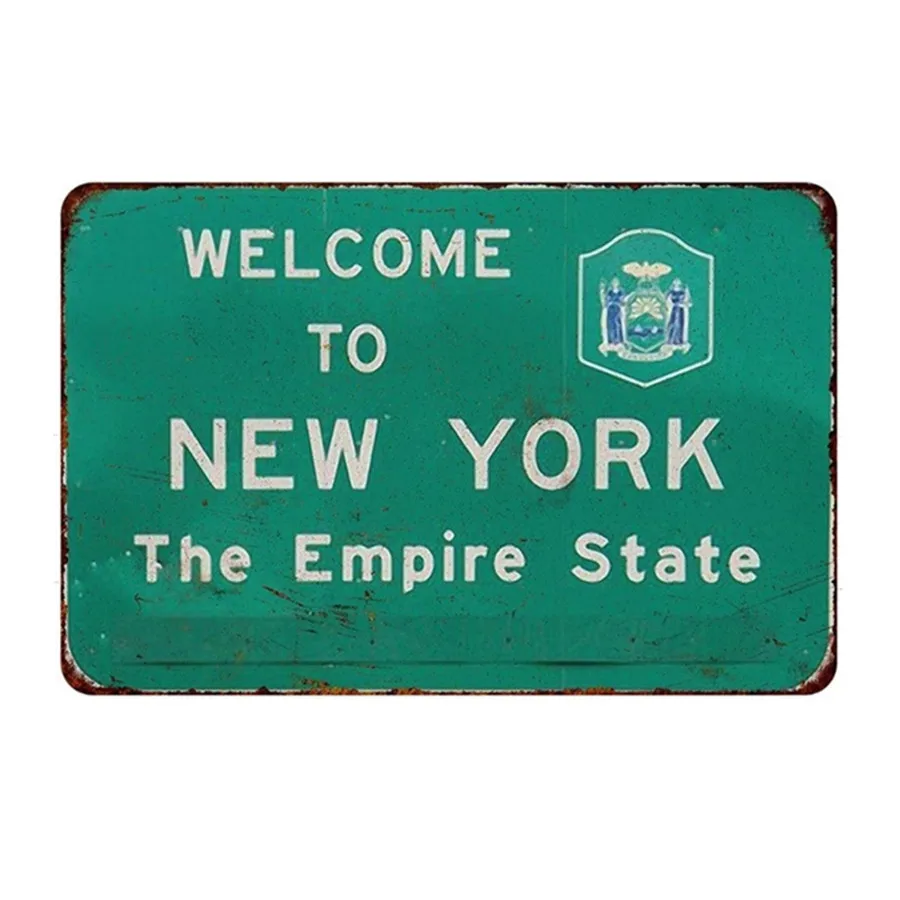 Оловянная тарелка Welcom в Нью-Йорк Highway Оловянная табличка Vintage Нью-Йорк