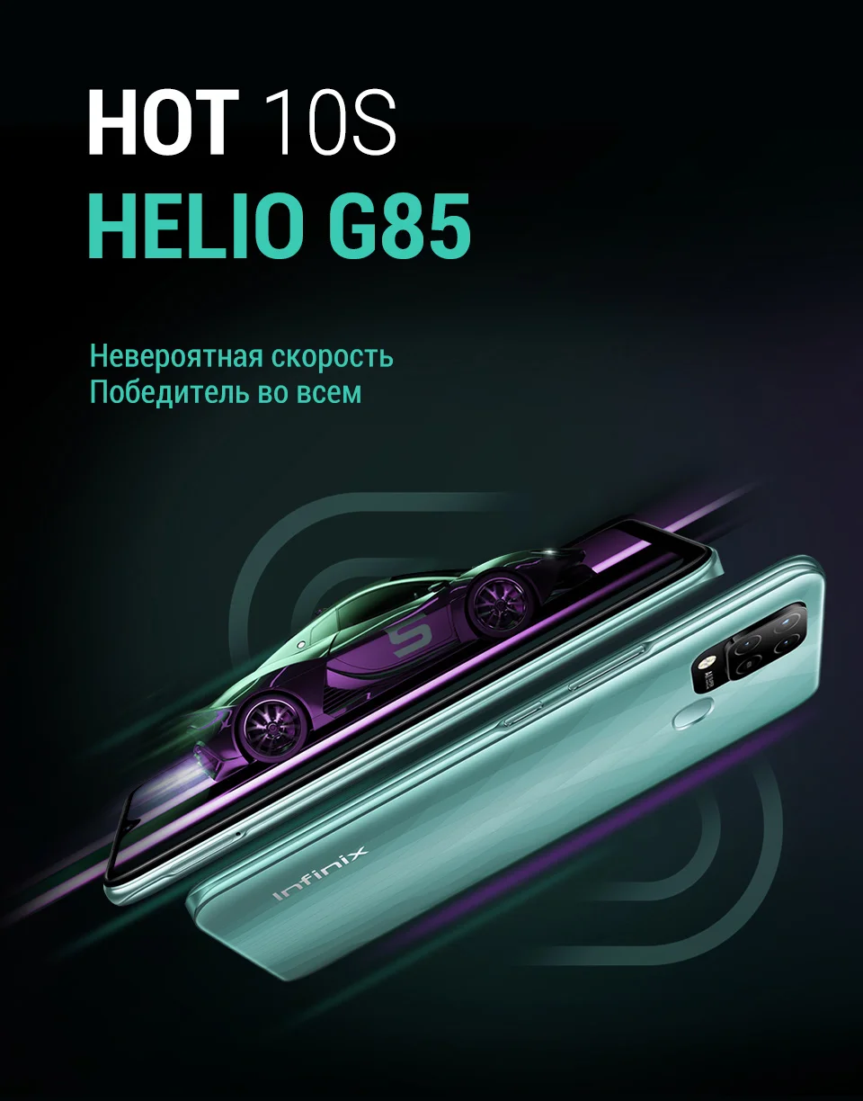 Смартфон Infinix HOT 10s 4+128GB, Helio G85, Частота обновления 90Гц, NFC, Тройная камера 48Мп, российская гарантия,Molnia