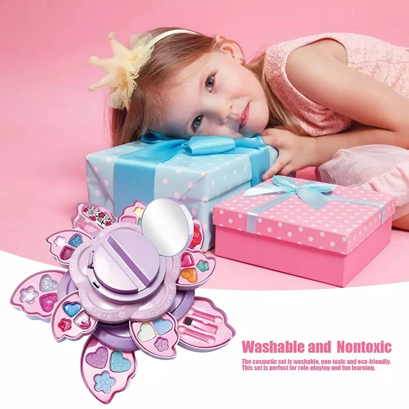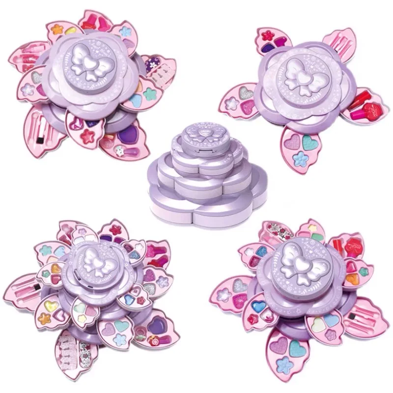 Набор игрушек для макияжа для девочек 2 в 1, домик для ролевых игр, моющийся набор для макияжа принцессы, вращающийся Цветочный ящик, Детская косметика, подарки
