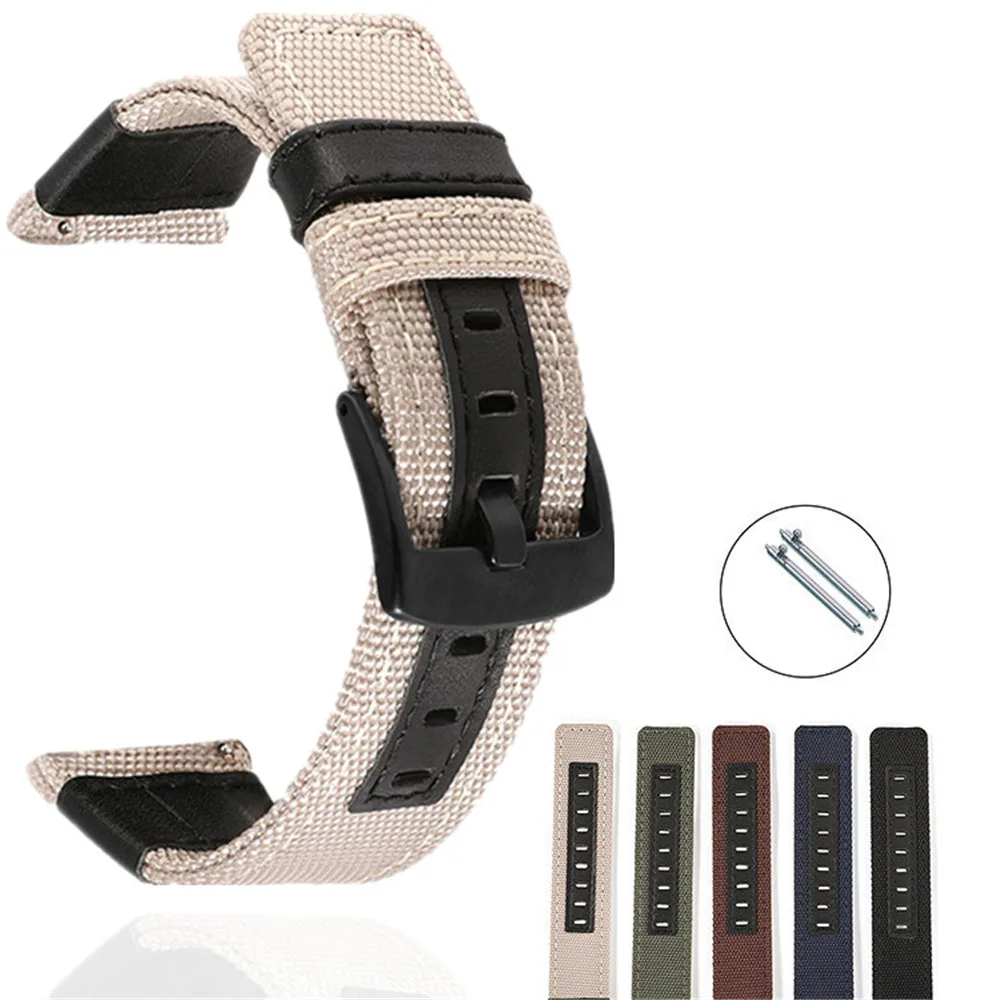 Ремешок из кожи и нейлона для Samsung Galaxy Watch 46 мм 42 мм Active 2 Gear S3, спортивный браслет для Amazfit Bip 20 мм 22 мм
