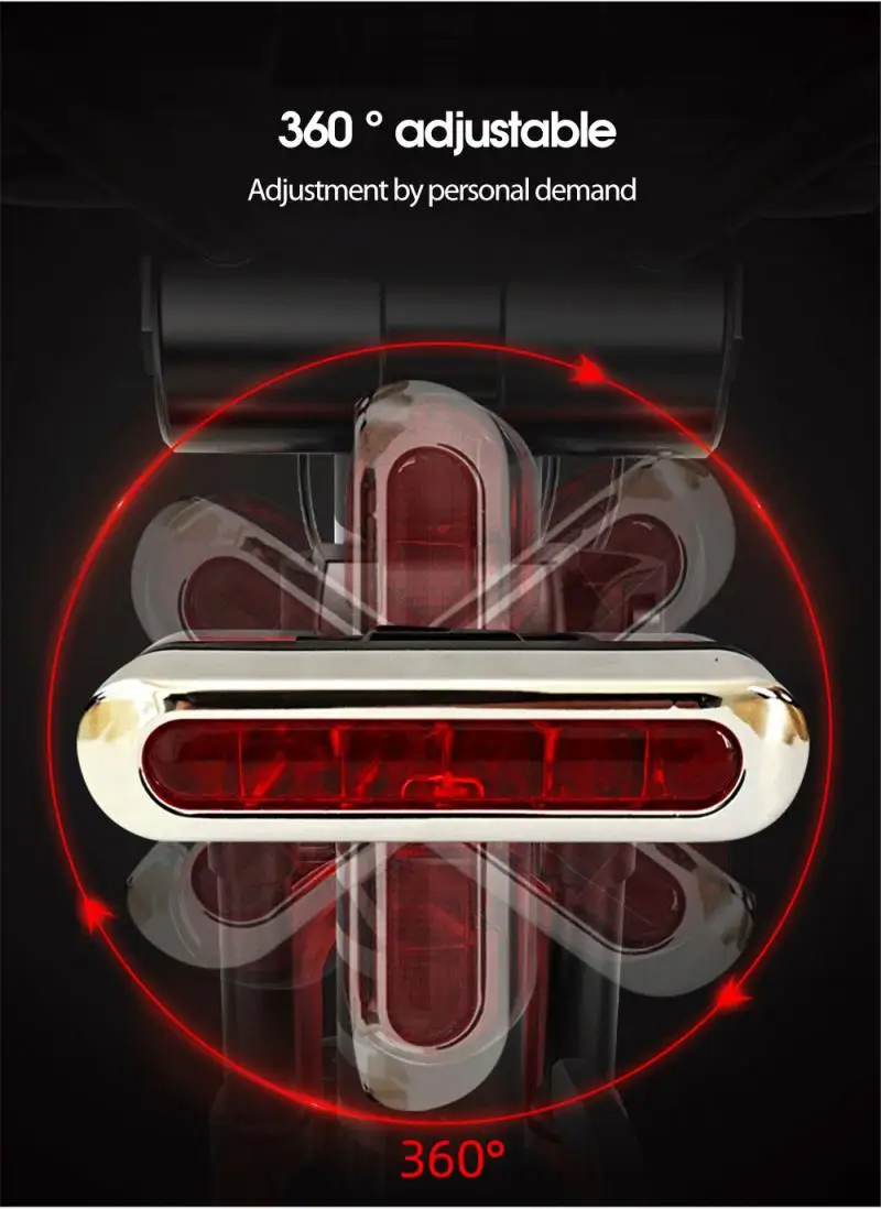 Яркий предупреждающий задний светильник Водонепроницаемый и ударопрочный, быстрая зарядка через USB Стильные яркие задние фонари, CoB лампы бусины + PC абажур, яркий и не ослепительный 360 ° регулируется, в соответствии с личными потребностями Четыре светильник режима к окружающей среде испытания, чередуя медленное мигание-все светильник s мигает быстро-поочередно Быстрое мигание-always on