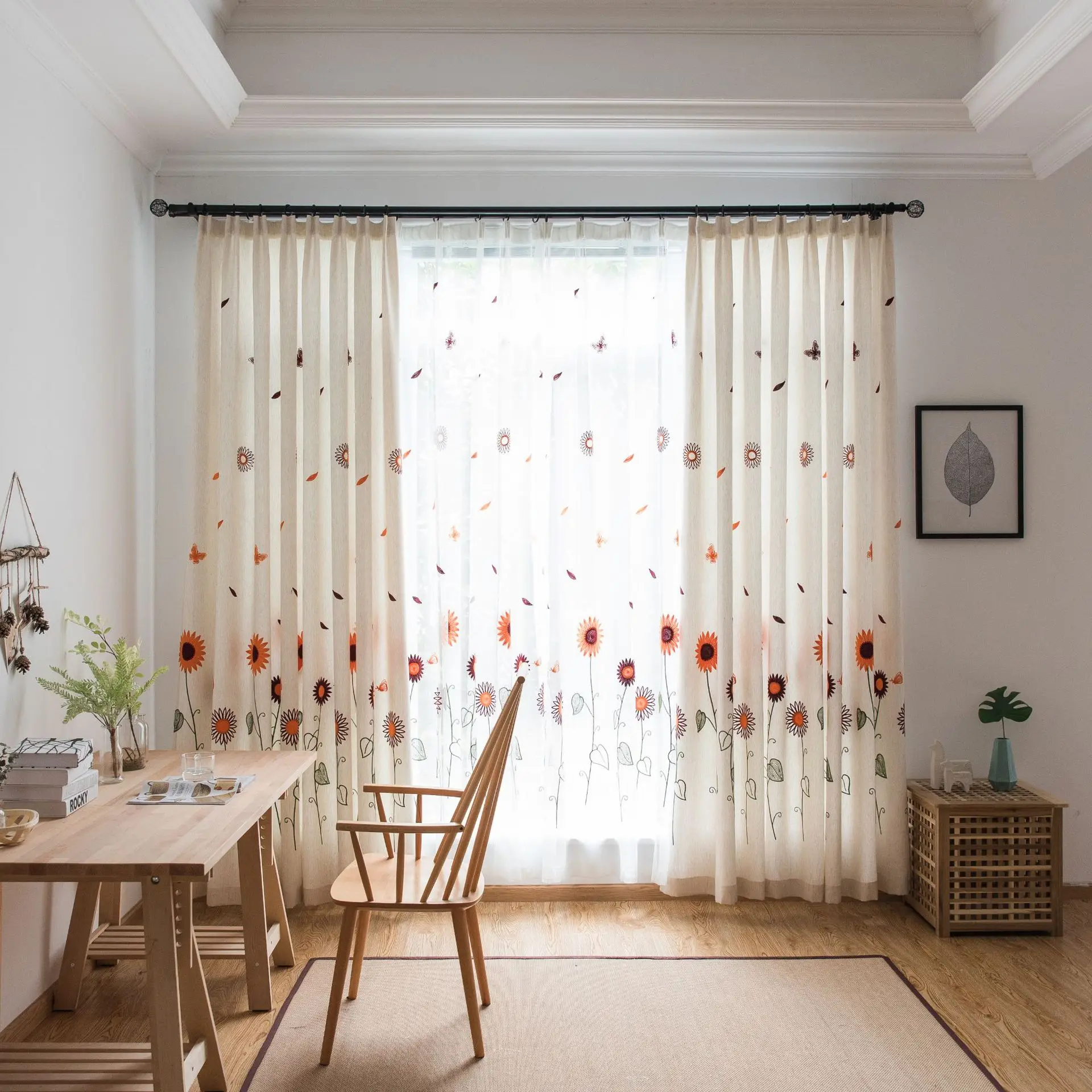 Шторы с вышивкой в скандинавском стиле, прозрачные Занавески для го...