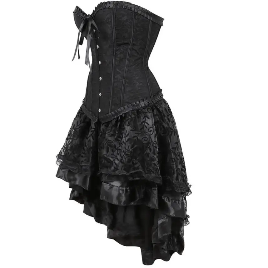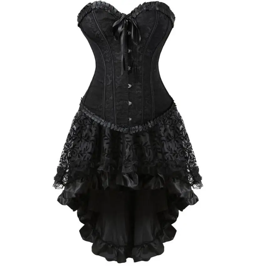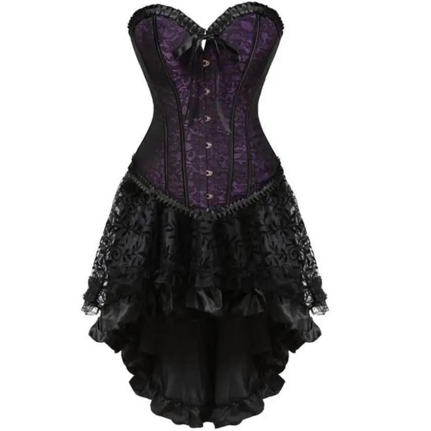 Готический корсет и кружевное платье с воланами и юбки комплект готический платья Корсеты и бюстье вечерние размера плюс Винтаж сексуальное платье с корсетом