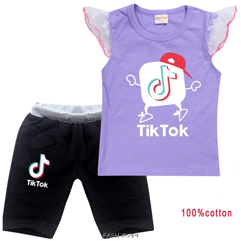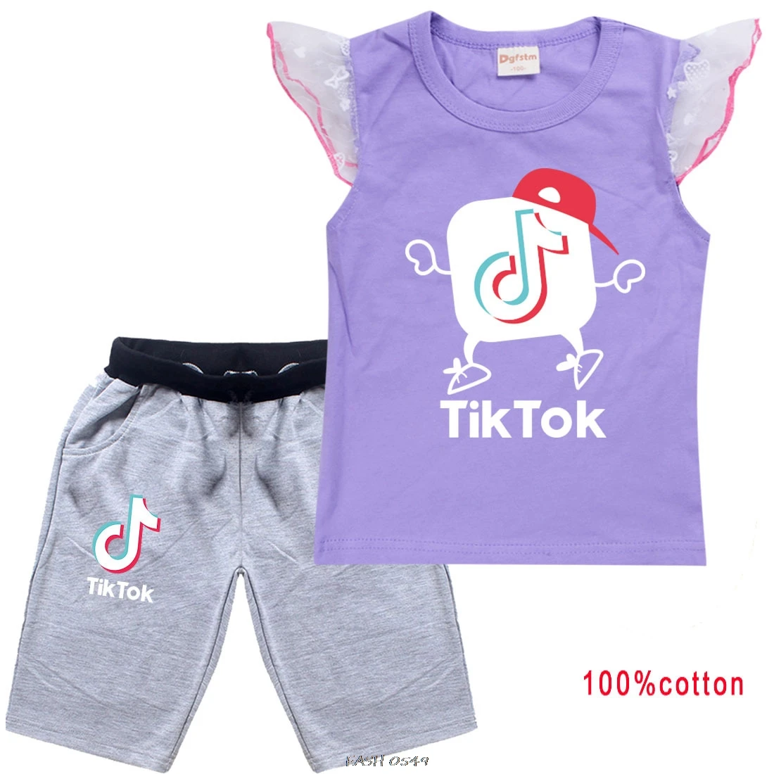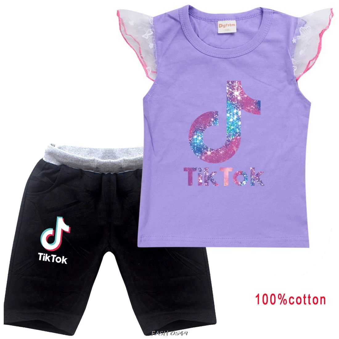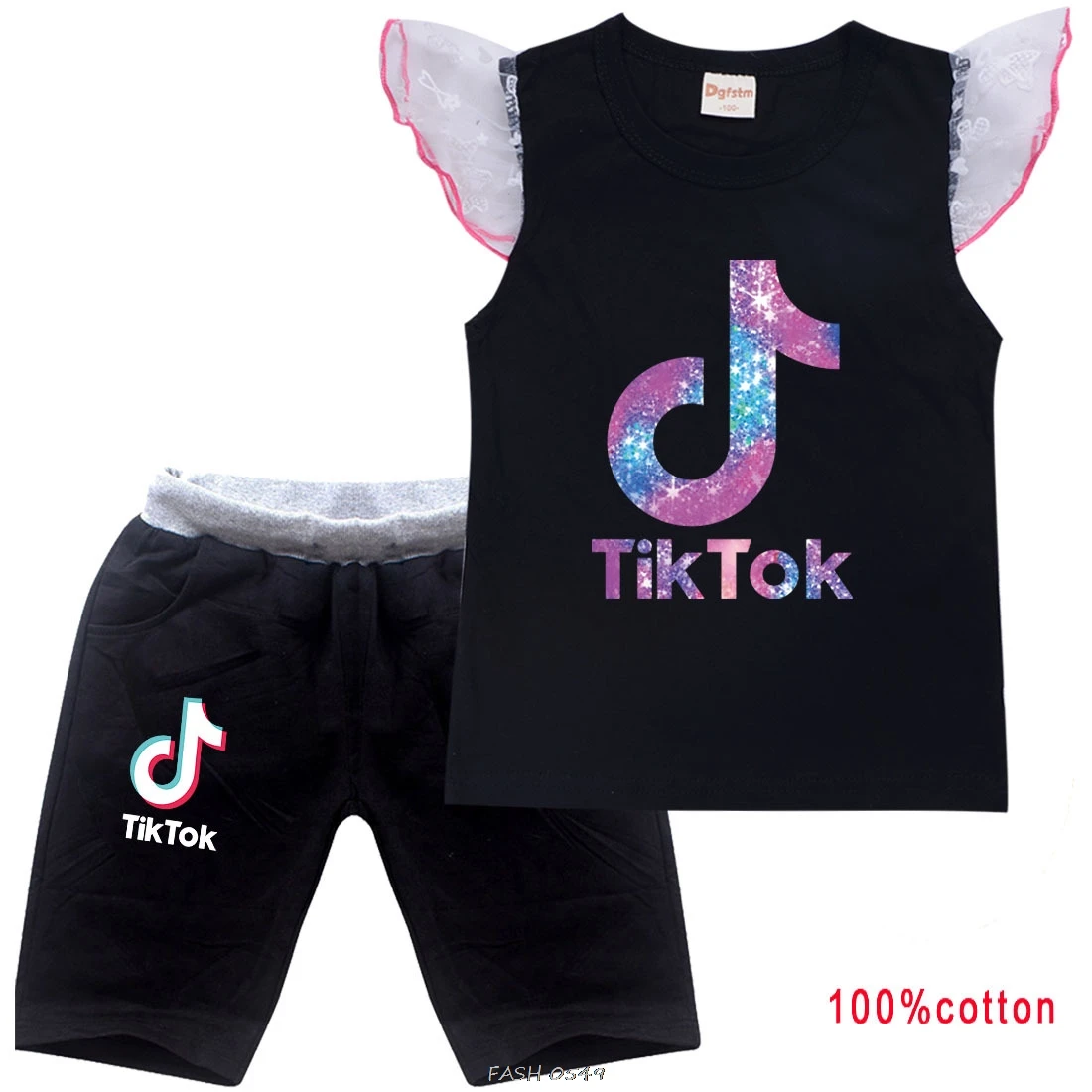 Детские тик ток для детей ясельного возраста, одежда для мальчиков, летние хлопковые футболки с короткими рукавами для мальчиков; Футболка + шорты Tik Tok косплей костюм милые топы для девочек, комплект со штанами