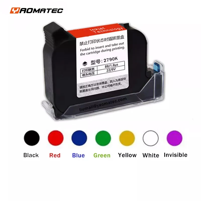 1: типы: Быстросохнущий картридж (YAOMATEC B уровень)2: чернила: растворяющие Быстросохнущие чернила3: Емкость: 42 мл4: Цвет: черный/красный/зеленый/синий/белый/желтый/невидимый5: количество принтов: можно напечатать 800000 символов; Можно напечатать 1200 страниц бумаги формата А4 (5% на лист), прочный6: Напряжение: 9,6 V-10,8 V7: ширина импульса: 120 ~ 180 мм8: DPI:600DPI9: Срок службы: 6 месяцев (рекомендуется купить 1-2 за один раз из-за срока службы 6 месяцев, рассчитать срок службы со дня оплаты.
