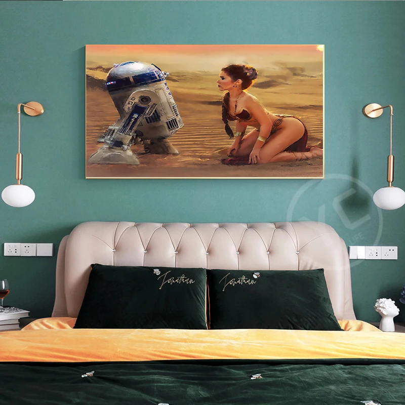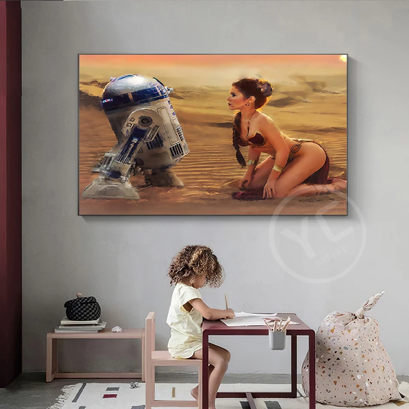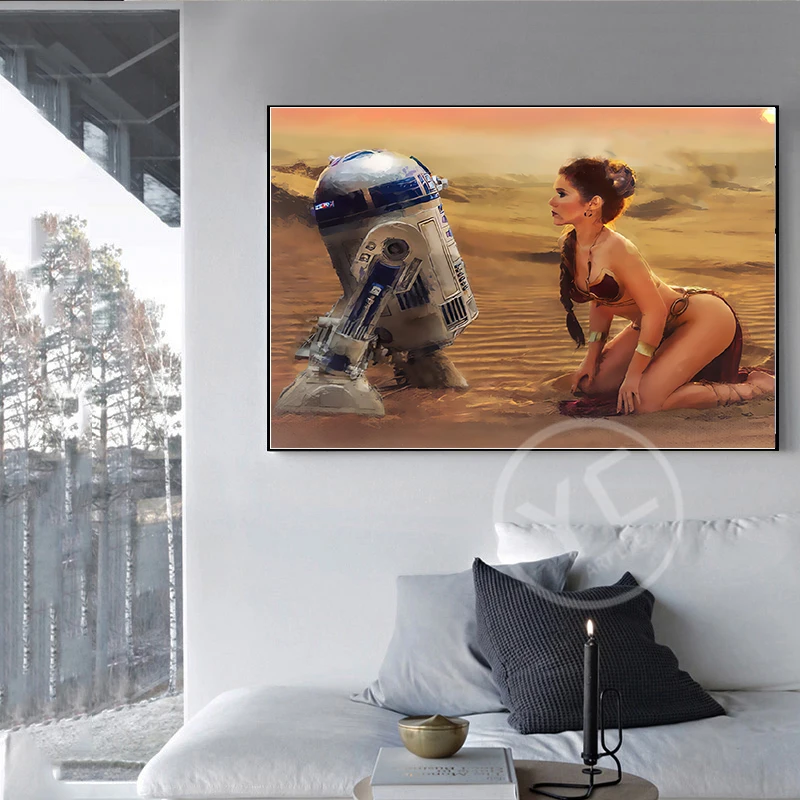 Настенный плакат по мотивам фильма Звездные войны R2D2 и привлекательная Женская Картина на холсте Настенная картина для гостиной домашний декор Caudro