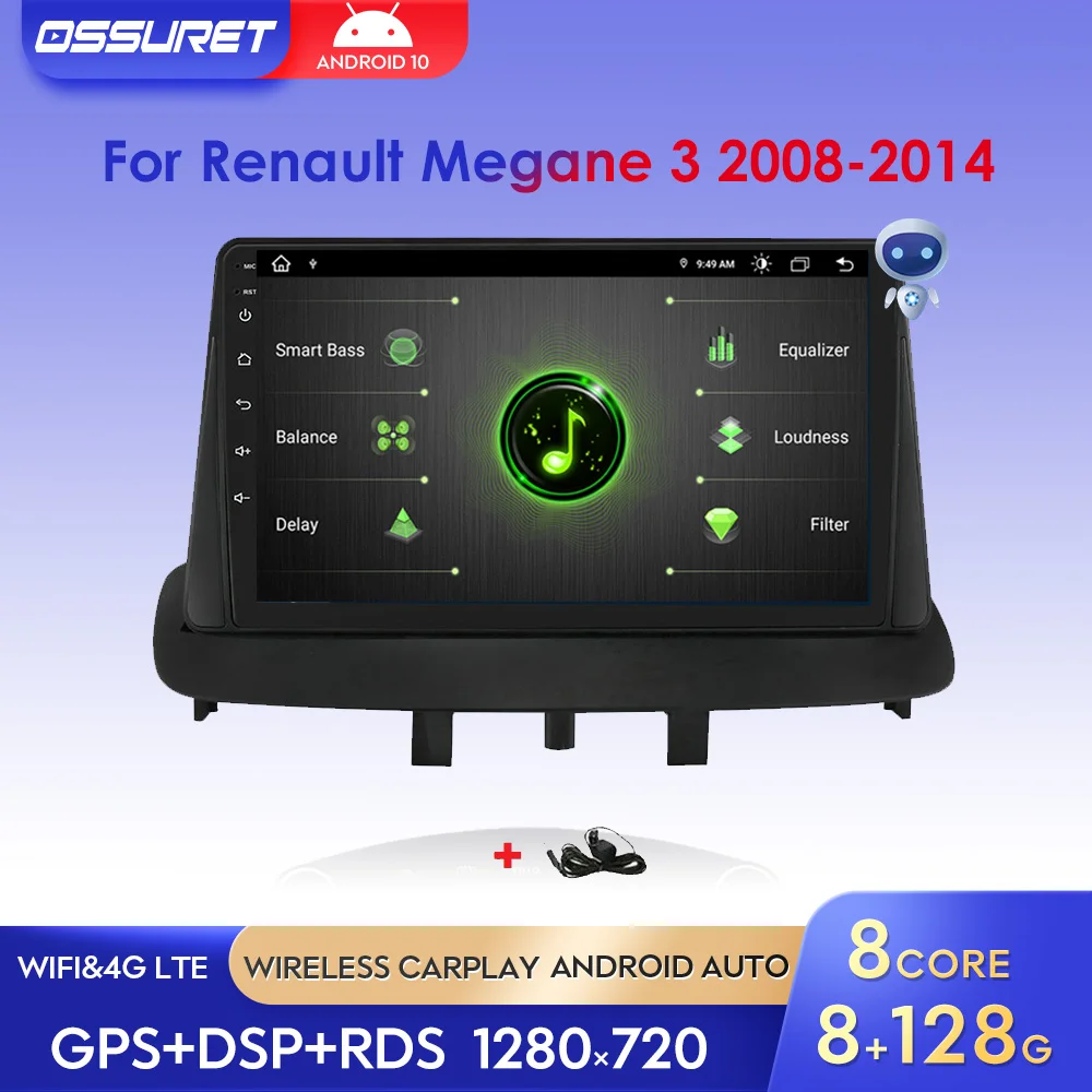 Автомобильный мультимедийный радиоплеер для Renault Megane 3 Fluence Android 10, Навигация BT WIFI Видео Стерео SWC рамка 4G LTE камера DVR