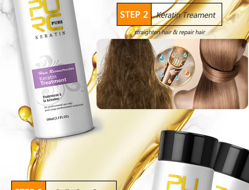 -S1 100 мл очищающий шампунь: (Перед использованием кератина, глубоко очищает кутикл волос. И открыть кутикулу для оптимальной восприимчивости кератинового лечения) -S2 100 мл Кератиновое лечение; (0% или 5% или 8% или 12%, выпрямляет волосы, восстанавливает волосы, увлажняет волосы, разглаживает волосы) -S3 100 мл Ежедневный Шампунь; -S3 100 мл ежедневный Кондиционер; (Используйте после 3 дней кератинового лечения, удерживайте эффект дольше) Совет: Кератин можно приобрести отдельно в зависимости от состояния волос. Но S1 и S3 не должны приобретаться отдельно, потому что S1 и S3 делают кератин более эффективным.