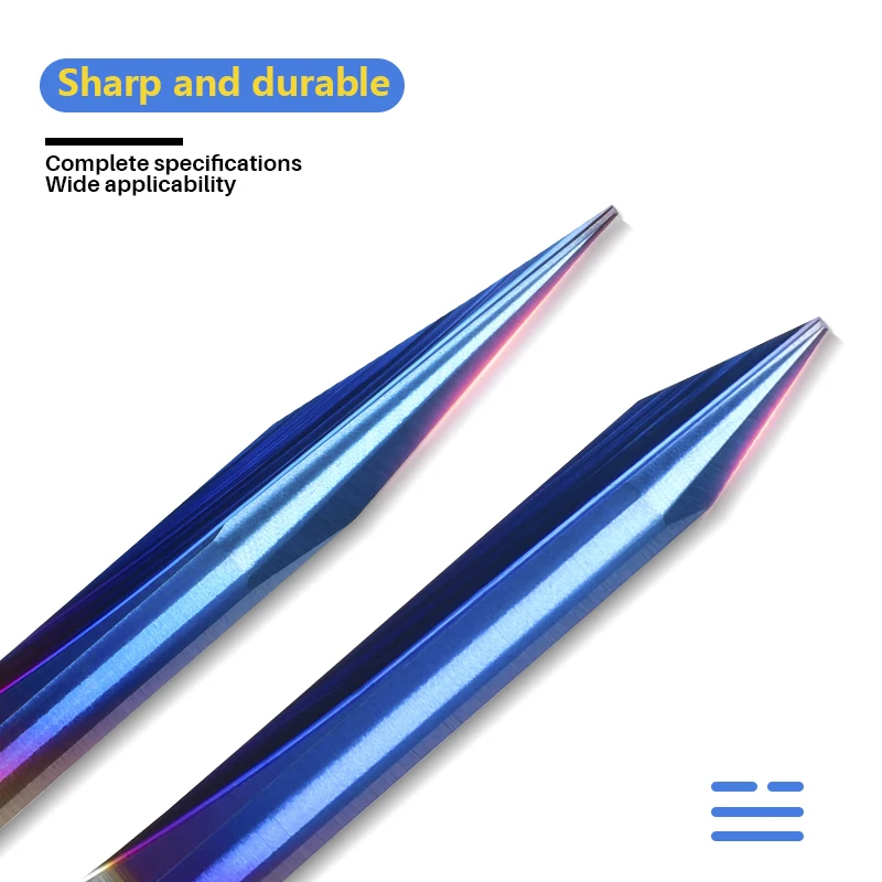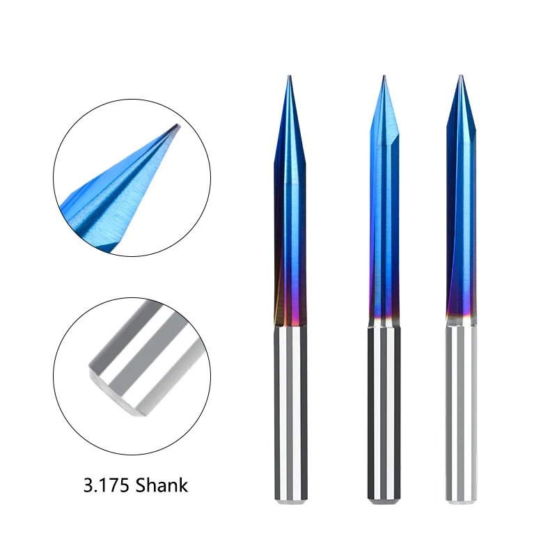 1 шт. 3,175 мм хвостовик 2 канавки прямой Фрезерный резак 0,1-0,5 мм нано синее покрытие V-образная головка 2030456090 градусов гравировальное долото с ЧПУ