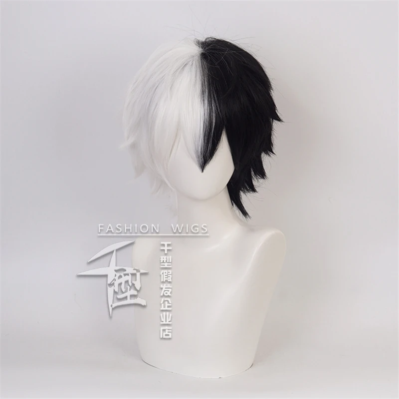 Парик для косплея бродячие псы, термостойкий, короткие черные с бел...