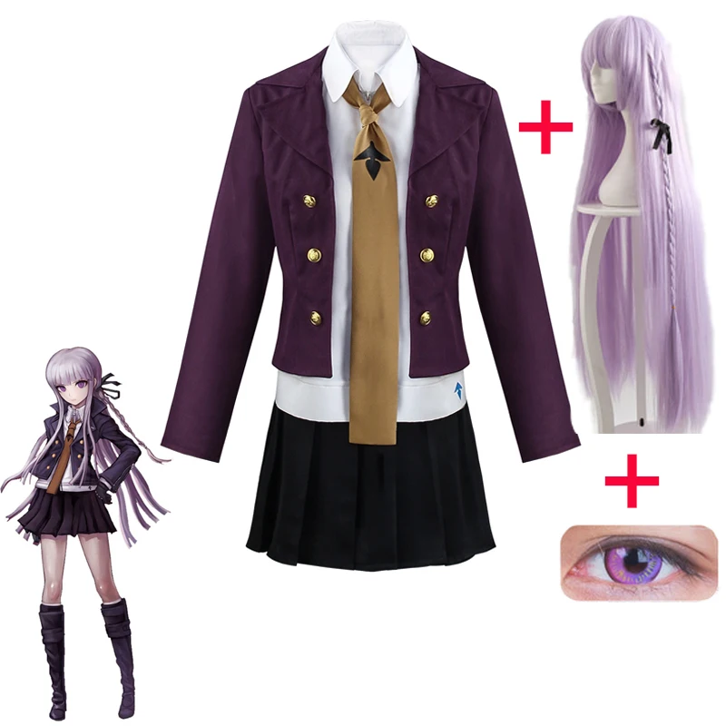 Костюм для косплея аниме данганронпа киригири Kyouko, с фиолетовым париком, контактные линзы для косплея, для Хэллоуина, карнавала, для женщин