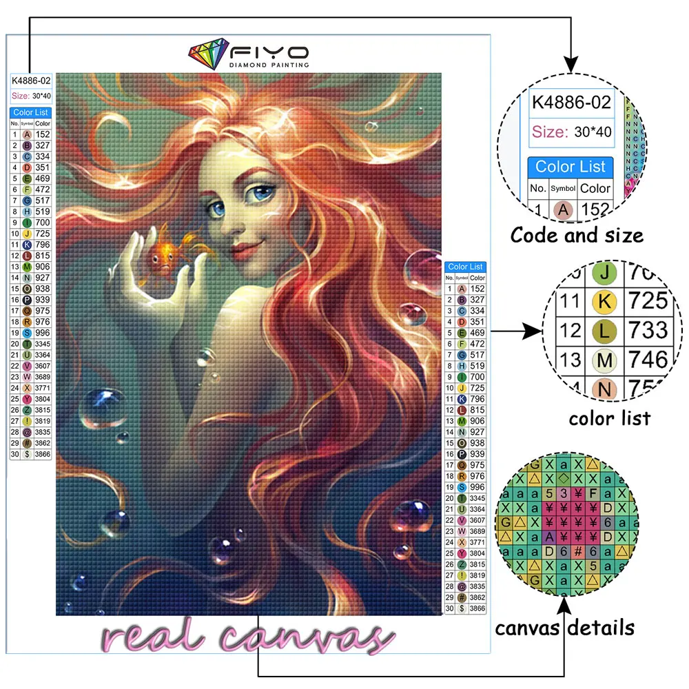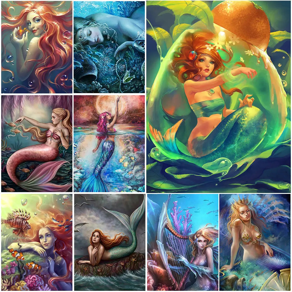 Полноразмерная алмазная живопись, мультяшная принцесса русалки 5D, алмазная вышивка Стразы сделай сам, настенные картины, украшение для дома
