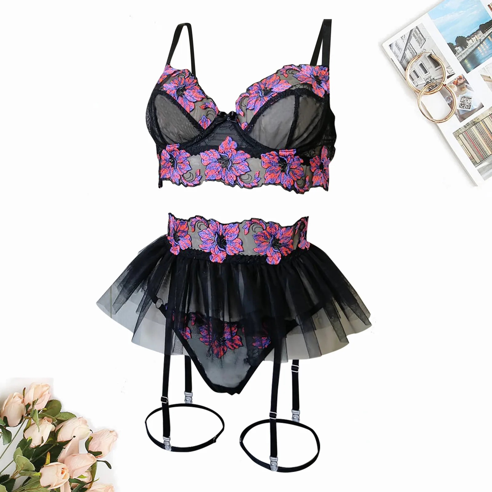 Горячие эротические костюмы, кружевные женские комплекты с вышивкой, прозрачное Сексуальное белье, женское нижнее белье, Порно трусики, комплекты с подвязками, сексуальная одежда для сна